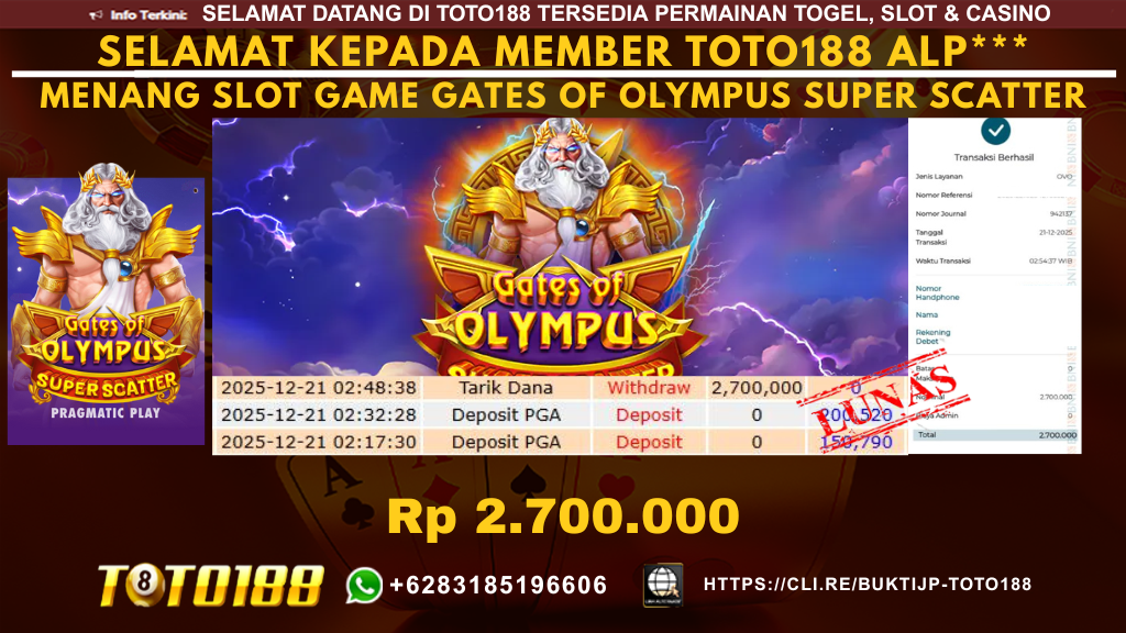 BUKTI JP MEMBER TOTO188 BERAPAPUN KEMENANGAN MEMBER TOTO188 PASTI 100% DI BAYAR LUNAS