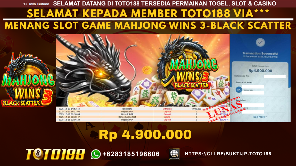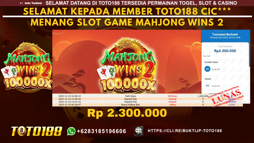 Bukti Kemenangan SLOT GAME MAHJONG WINS 2 Tanggal 19 DECEMBER 2025