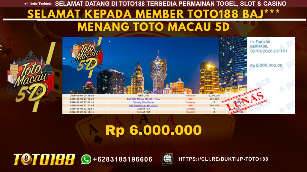 TOTO188 adalah situs togel dan toto terpercaya di Asia. TOTO188 dikenal sebagai Raja Togel dan menjadi pemimpin Industri Togel No. 1 di Indonesia.