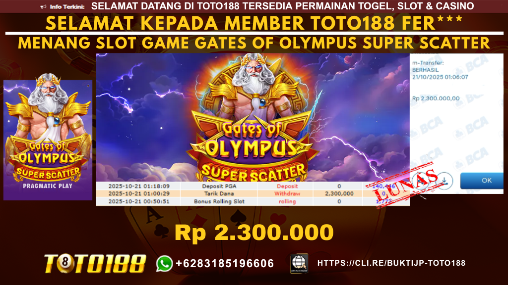 Bukti JP Kemenangan SLOT GAME GATES OF OLYMPUS SUPER SCATTER Tanggal 21 OKTOBER 2025