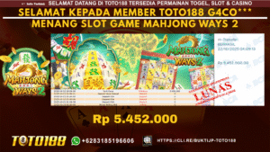 TOTO188 adalah situs terpercaya untuk Togel, Live Casino, dan Slot Online di Indonesia. Dengan satu ID, mainkan berbagai permainan dan menangkan besar. Kami menjamin pembayaran penuh untuk setiap kemenangan Anda. Nikmati juga promosi menarik dan deposit minimal hanya Rp. 10.000. Bergabunglah sekarang di JACKPOT IDN LIVE TOTO188  untuk pengalaman bermain yang aman dan menguntungkan. Berikut adalah BUKTI KEMENANGAN MEMBER di TOTO188  : Selamat kepada pengguna ID LAN*** yang baru saja memenangkan Rp. 16.000.000,-  dalam Permainan SLOT MAHJONG WINS 2 Kami proses dan bayar 100% kemenangan dengan cepat, hanya dalam 3-5 menit. Bukti pembayaran kami adalah bukti kemenangan member, jaminan kejujuran dan transparansi TOTO188. Jangan lewatkan kesempatan untuk bergabung dengan kami di TOTO188, tempat di mana kemenangan besar menanti Anda.BONUS PROMO TOTO188 :