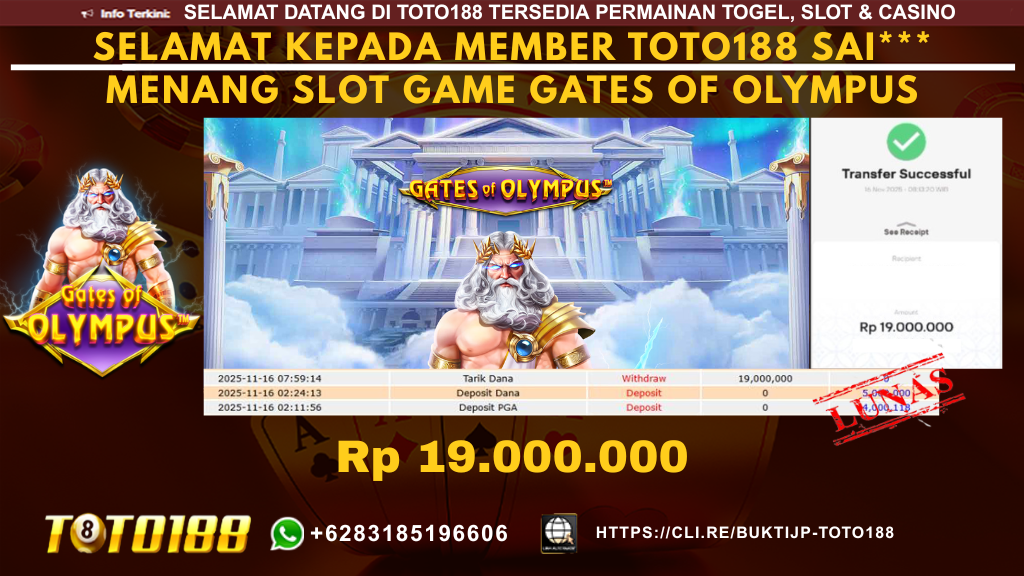 Bukti Kemenangan SLOT GAME GATES OF OLYMPUS Tanggal 16 NOVEMBER 2025