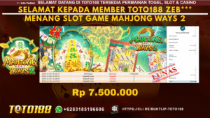 TOTO188 adalah situs terpercaya untuk Togel, Live Casino, dan Slot Online di Indonesia. Dengan satu ID, mainkan berbagai permainan dan menangkan besar. Kami menjamin pembayaran penuh untuk setiap kemenangan Anda. Nikmati juga promosi menarik dan deposit minimal hanya Rp. 10.000. Bergabunglah sekarang di JACKPOT IDN LIVE TOTO188  untuk pengalaman bermain yang aman dan menguntungkan. Berikut adalah BUKTI KEMENANGAN MEMBER di TOTO188  : Selamat kepada pengguna ID IKY*** yang baru saja memenangkan Rp. 2.500.000,-  dalam Permainan SLOT MAHJONG WAYS 2  Kami proses dan bayar 100% kemenangan dengan cepat, hanya dalam 3-5 menit. Bukti pembayaran kami adalah bukti kemenangan member, jaminan kejujuran dan transparansi TOTO188. Jangan lewatkan kesempatan untuk bergabung dengan kami di TOTO188, tempat di mana kemenangan besar menanti Anda.BONUS PROMO TOTO188 :
