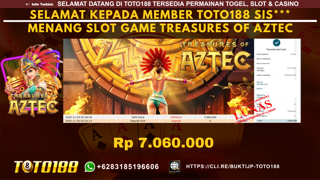Bukti Kemenangan SLOT GAME TREASURES OF AZTEC Tanggal 20 NOVEMBER 2025