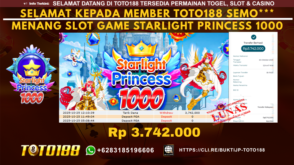 Bukti Kemenangan SLOT GAME STARLIGHT PRINCESS 1000 Tanggal 28 OKTOBER 2025