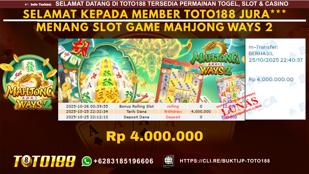 Bukti Kemenangan SLOT GAME MAHJONG WAYS 2 Tanggal 26 OKTOBER 2025