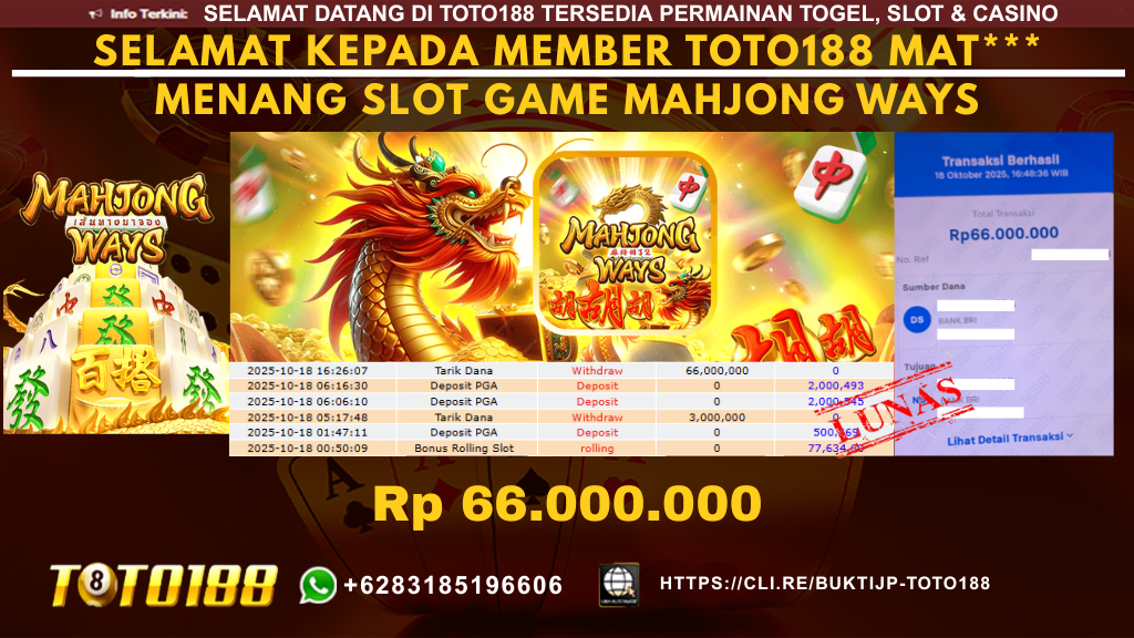 Bukti Kemenangan SLOT GAME MAHJONG WAYS Tanggal 18 OKTOBER 2025