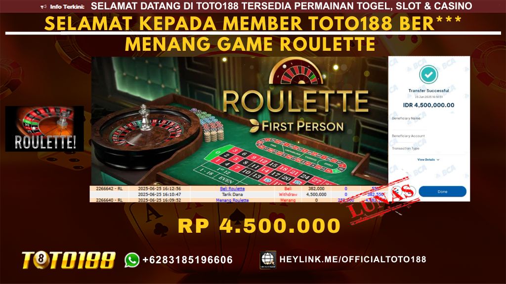 Bukti Kemenangan SLOT GAME ROULETTE Tanggal 25 JUNI 2025