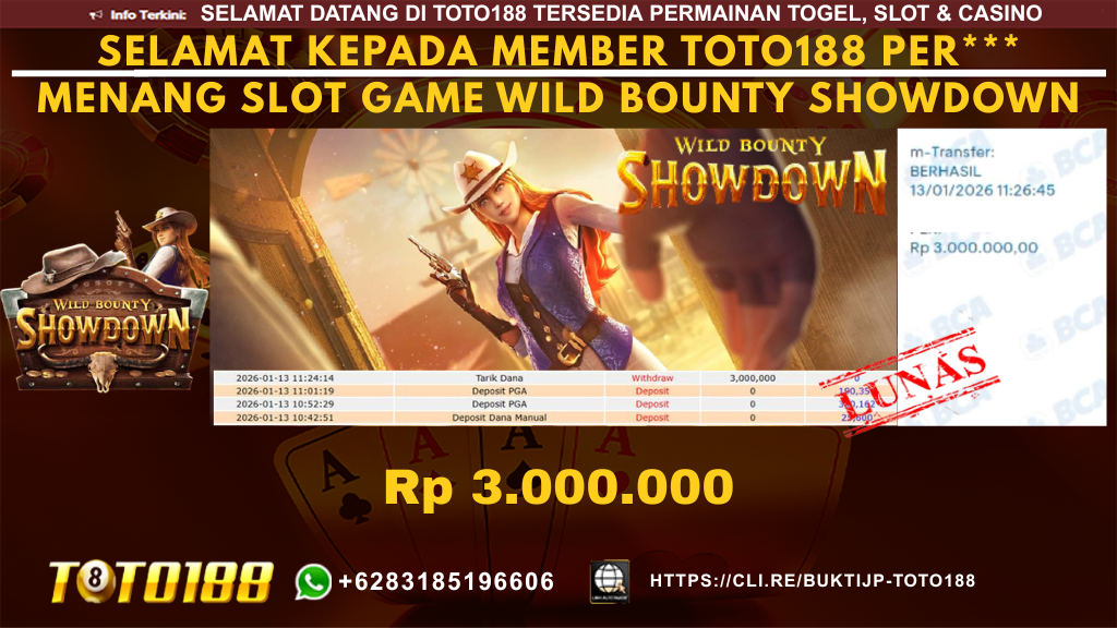 Bukti Kemenangan SLOT GAME WILD BOUNTY SHOWDOWN Tanggal 13 JANUARI 2026