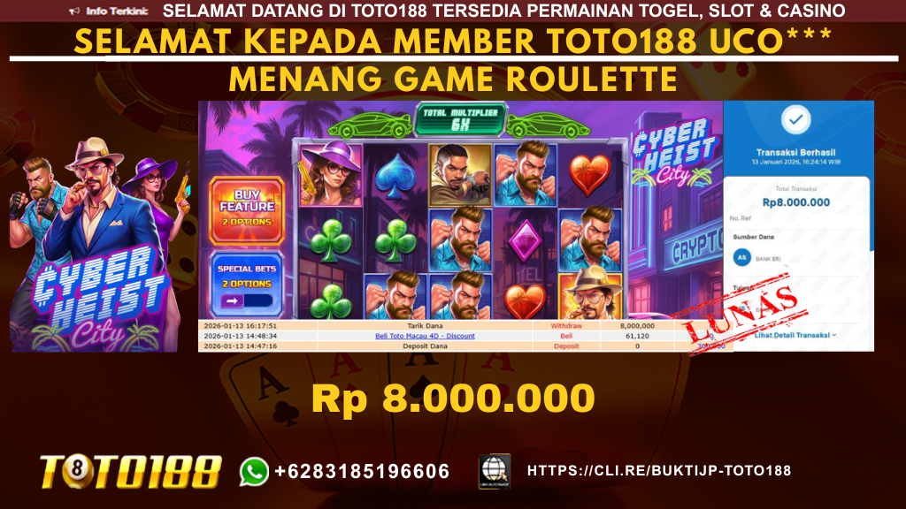 Bukti Kemenangan SLOT GAME CYBERHEIST CITY Tanggal 13 JANUARI 2026