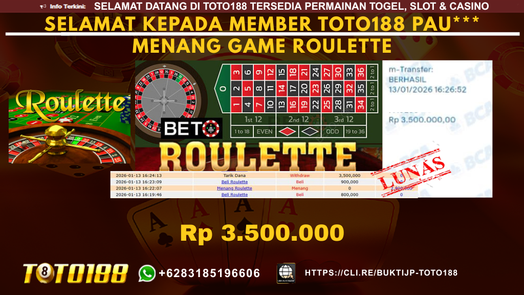 Bukti Kemenangan SLOT GAME MENANG ROULETTE Tanggal 13 JANUARI 2026
