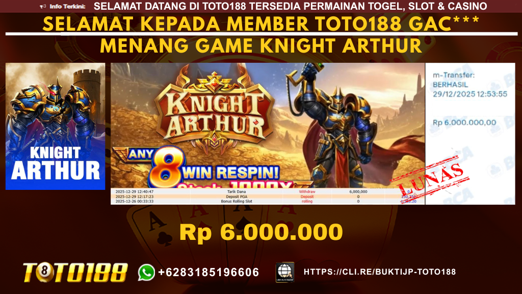 Bukti Kemenangan SLOT GAME KNIGHT ARTHUR Tanggal 29 DECEMBER 2025