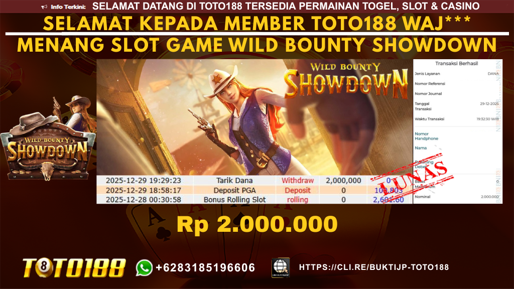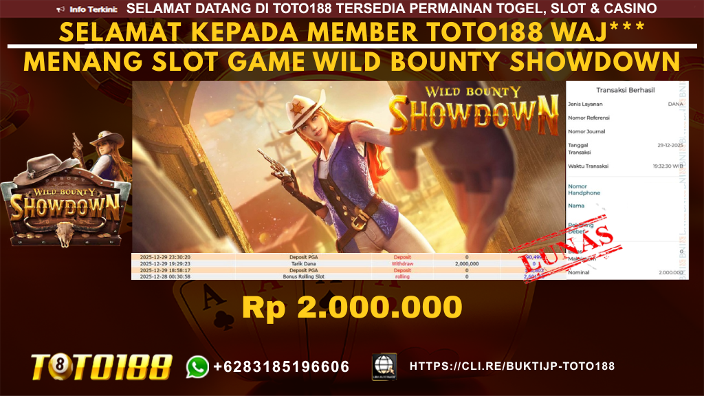 Bukti Kemenangan SLOT GAME WILD BOUNTY SHOWDOWN Tanggal 29 DECEMBER 2025
