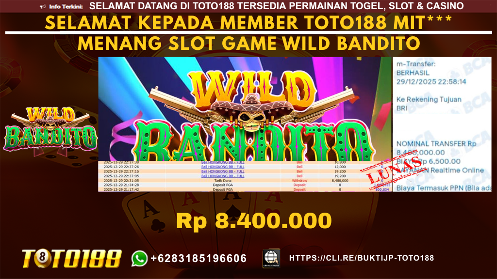 Bukti Kemenangan SLOT GAME WILD BANDITO Tanggal 30 DECEMBER 2025