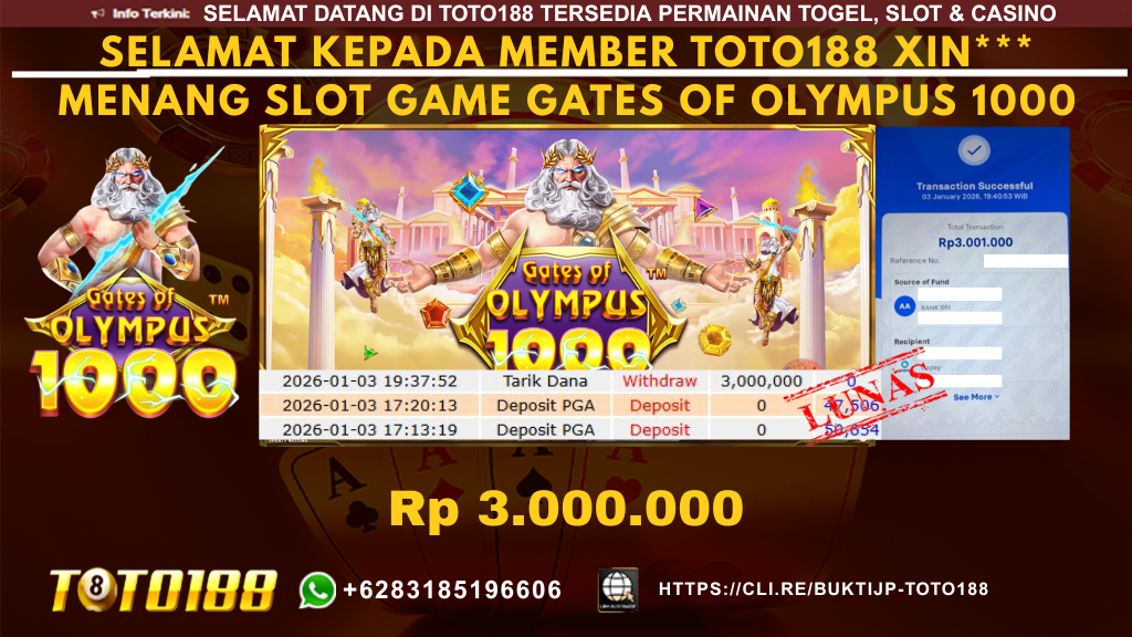 Bukti Kemenangan SLOT GAME GATES OF OLYMPUS 1000 Tanggal 03 JANUARI 2026